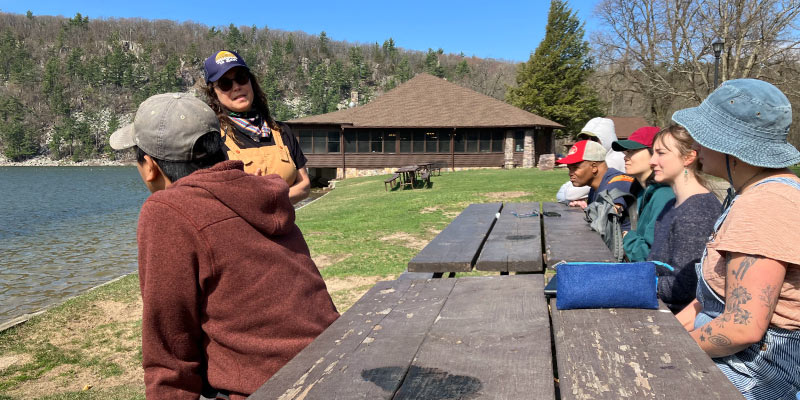 This year, the class integrated another of the center’s offerings: CHE walks, or “mini place-based workshops,” as center director Will Brockliss explains. Led by CHE faculty associate Beatriz Botero, the walks brought students to Tewakącąk (Devil’s Lake) near the Wisconsin Dells and Indian Lake State Park in northwestern Dane County. There, students found inspiration for their class project, which required them to examine and reflect on the environmental and human history of the area.