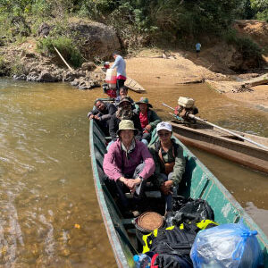 In Nam Et-Phou Louey National Park in northern Laos, a boat of tourists quietly floats down the Nam Nern River.